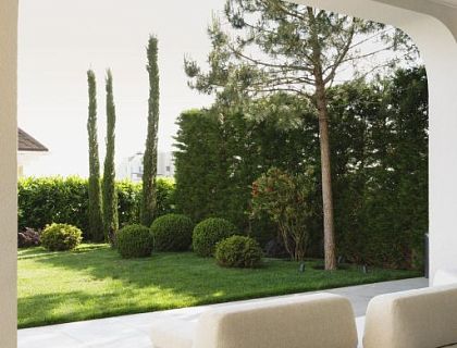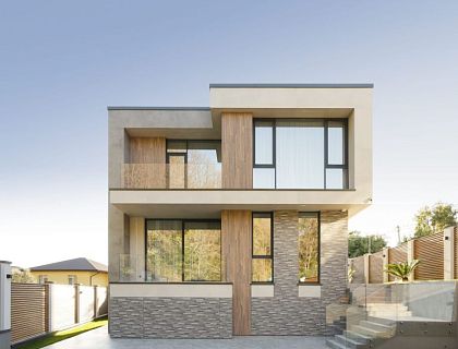 На данном примере можно наглядно убедиться, что 220 метров общей площади дома на 4,7 сотках земли может хватить на комфортное проживание семьи из 5 человек. Дом состоит из 2 этажей и чердачного полуэтажа. Террасирование участка позволило зонировать участок в 2 уровня. Нижний уровень служит парковкой, входной группой и зоной благоустройства. Верхний уровень полностью предоставлен приватной видовой зоной отдыха.