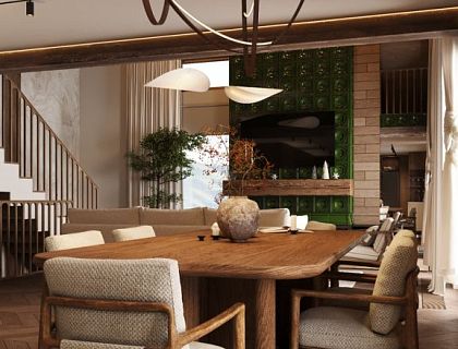 Уютное гнездышко в горах. 250 кв.м. Экологичного дизайна и стиля. Шале для молодой семьи, которая много путешествует и живет полной жизнью. Ребята очень любят кататься на лыжах и нашли идеальное место для зимнего отдых или даже постоянного проживания. Много дерева, рустик , эклектика в деталях.
