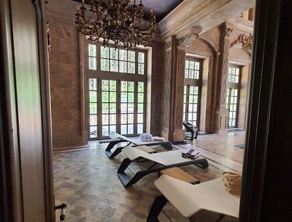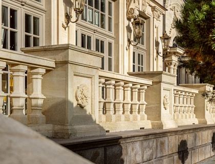 В экстерьере здания, авторы проекта, соединили два стиля: “Барнхаус” и “Альпийское Шале”. От “Барнхаус” досталась фальцевая кровля, покрытая матовым серым металлом, который частично переходит с кровли на стену. Сделали скрытые водостоки. В кровлю добавили витражные наклонные окна в алюминиевых рамах. Такой архитектурный приём использовали для обеспечения естественного освещения в Дегустационном Зале и добавления частицы лёгкости в монотонность кровли.