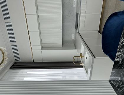 Реализованный проект квартиры в ЖК «Махаон» — наш второй проект для семьи из трёх человек. Первую квартиру мы делали десять лет назад. Здесь нет решений ради моды — всё продумано под их ритм жизни. Это вторичка со сложной планировкой: стояли перегородки, отделаны санузлы, установлена сантехника. Мы полностью пересмотрели план и создали современное, функциональное пространство.