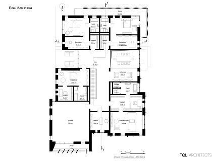 Вилла в Тимошкино / коттеджный посёлок Шато Соверен / Московская область Архитектор Вадим Тополев Основной задачей при проектировании дома была смена уклада жизни семьи в мегаполисе на более спокойную жизнь за городом. ТЭП Площадь участка 2145 кв. м Площадь застройки 742 кв. м из в неё: Площадь пятна застройки дома 484 кв. м Площадь террасы 225 кв. м Общая площадь дома 827.6 кв. м. Официальный сайт студии → tolarch.ru