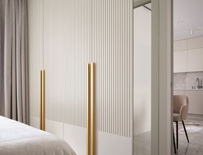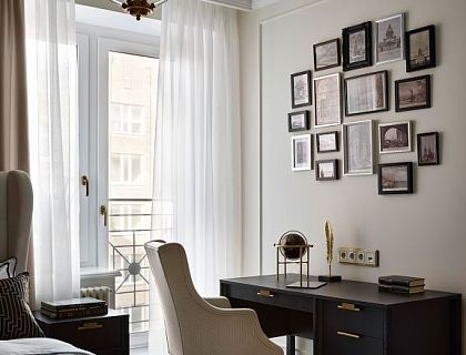 Наше бюро спрооектировало настоящую жемчужину в Приморском районе Санкт-Петербурга – роскошную квартиру в пудровых серо-бежевых тонах с латунными переливами. Заказчица этой очаровательной резиденции – владелица агентства недвижимости, имеющая двух сыновей, поэтому дизайнер сразу же получила четкий перечень пожеланий: утонченный, изысканный, просторный и светлый интерьер с зеркальными поверхностями, латунными элементами и молдингами.