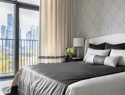 Московская квартира 83 м в классическом стиле. Для молодой женщины: комфорт, качество, благородный вид — современная классика в нейтральных тонах. Стандартную трёшку трансформировали в функциональное, просторное жильё: 10 помещений — включая санузлы, холл и гардеробную. Почти вся мебель изготовлена на заказ по авторским эскизам из‑за необходимости нестандартных размеров.