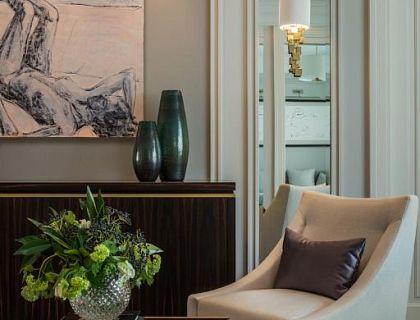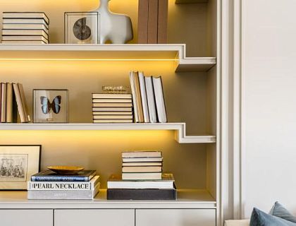 Маленький и функциональный. Клиент пришёл с недоделанным проектом — мы согласовали отделку, мебель, освещение и декор, перепроектировали шкафы, переделали кухню, добавили текстиль, картины, декоративные стенки и авторскую керамику. Работа велась на стадии финальной отделки, интерьер создавался в готовом пространстве с вниманием к деталям. Использовали дубовые полы, лепнину, нежные ткани, стекло и мрамор; акцент на обтекаемых формах, мягких коврах и натуральных оттенках.