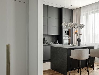 Реализованный проект квартиры в ЖК Садовые кварталы 140 м2 для семьи из 3 человек. Кухня-гостиная, мастер спальня с гардеробной, санузлом и балконом, детская комната, кабинет, детский санузел, мужской санузел и постирочная.