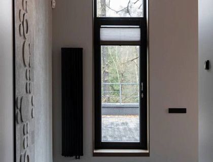 Проект «Свет сквозь сосны». Дом, где главный герой — природа. В центре композиции — живое дерево в стеклянном кубе, объединяющее пространство. Панорамное остекление, монохромная палитра и натуральные материалы создают атмосферу минимализма в скандинавско-японском ключе. Интерьер становится рамкой для меняющихся пейзажей за окном, а кухонный остров — местом сбора для неспешных ритуалов.