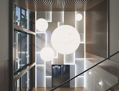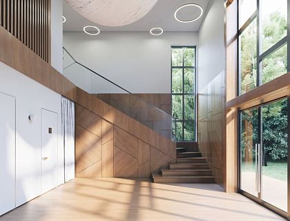 Авторы: Екатерина Каретина, Александр Мельниченко. Создана атмосфера уюта, сочетающаяся с классической строгостью в современном прочтении, перетекающие пространства, отсутствие лишних перегородок и дверей. Светильники, мебель, потолочные ниши - выполнены в бионической стилистике с плавными закругленными углами. Вкрапления латунных элементов освещения и декора "под золото" - создают композиционные акценты.