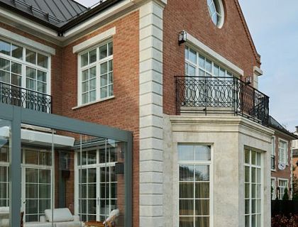 Загородный дом в Английском стиле на большую семью. Эксклюзивный камень- гранит Копакобана (Copacabana), ручной работы тераццо на полу и красный орех в отделке мебели создают вместе неповторимый стиль.
