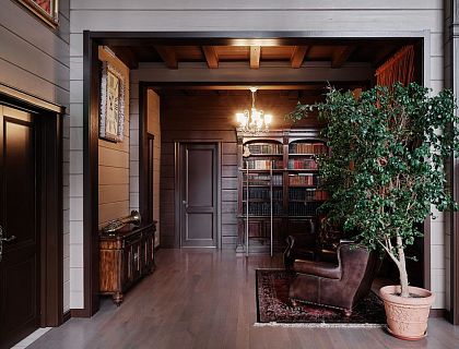 Этот загородный интерьер создан для молодой семьи, мечтавшей о спокойствии, простоте и выразительной архитектуре. Двухсветная гостиная с девятиметровым мраморным камином стала композиционным центром пространства. Грамотная работа с масштабом, светом и теплом натуральных материалов объединяет все зоны: от уютной кухни до лаконичного кабинета и расслабляющей ванной комнаты с видом на сад. Интерьер не диктует стиль, он создаёт ощущение естественной, мягкой и благородной среды для жизни.