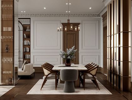 Квартира в ЖК «Серебряный фонтан», площадью 94 кв.м Создана для семьи из четырех человек. Пожелание заказчиков - сделать функциональный интерьер с изолированными комнатами для детей с продуманными зонами хранениями в современном стиле с элементами неоклассики.