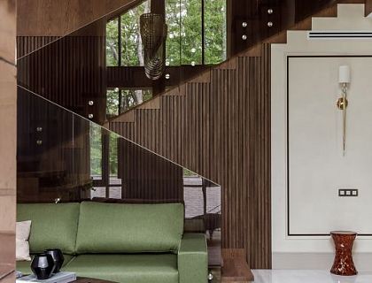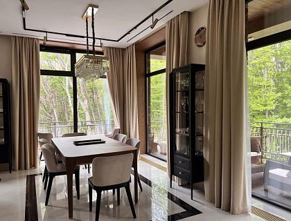 Дом расположен в центре города, на возвышенности с которой открывается шикарный вид на город. Панорамные окна, высокие потолки, встроенная система вентиляции и кондиционирования, домашний кинотеатр с выходом на открытую террасу.
