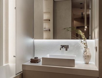 Дом спроектирован таким образом, что терраса с камином и грилем является сердцем дома, центром притяжения, очагом семьи.  Просторная двухуровневая терраса с камином – является своеобразным переходом от дома к природе и саду. В часть перекрытия террасы встроено световое окно для инсоляции. На участке удалось сохранить максимум деревьев – они растут здесь уже много-много лет и являются хранителями благополучия этого места.