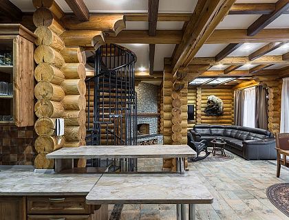 Коттедж находится в живописном месте среди сосновых деревьев. В архитектурном решении дома присутствуют черты английской элегантной классики. На первый взгляд тяжело определить – этот дом декорирован вчера или он в таком виде просуществовал уже столетие. Классика в интерьере никогда не выйдет из моды! Она всегда будет вызывать у нас спокойную умиротворенную атмосферу, и поражать нас своей изысканностью.