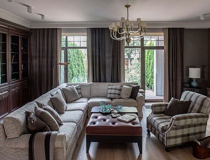 Фото интерьера, Гостиная площадью 30 кв.м. Проект Гостиная - Загородный дом в поселке Трувиль, Автор проекта: Архитекторы Павел Бурмакин