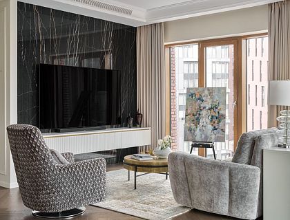 3D интерьера, Гостиная площадью 53 кв.м. Проект Гостиная - Таунхаус Химки, Автор проекта: Дизайнеры Николай Николаев