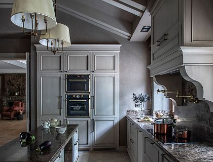 Фото интерьера, Кухня площадью 30 кв.м. Проект Кухня - Квартира в ЖК Барин Хаус, Автор проекта: Архитекторы Павел Бурмакин