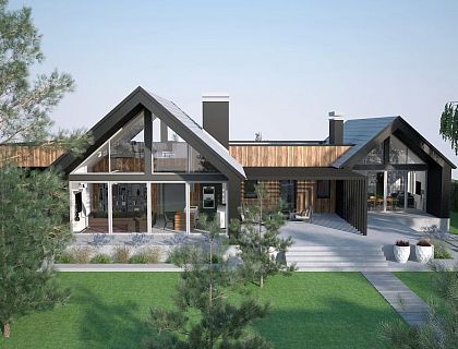 3D дизайн экстерьера, Загородный дом площадью 183 кв.м. 1 этаж, проект Загородный дом Стримлайн, Автор проекта: Архитекторы Сергей Гаврилов