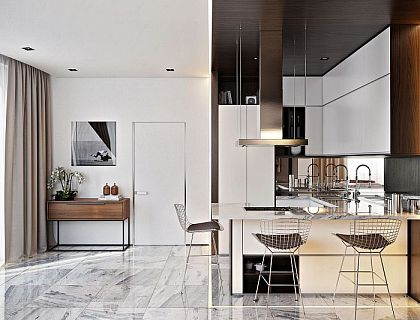 Документация интерьера, Кухня-гостиная площадью 50 кв.м. в стиле Фьюжн/Эклектика/Китч. Проект Стол, бар, гостиная - Новая Сцена - 2018, Автор проекта: Архитекторы Дмитрий Мудрогеленко