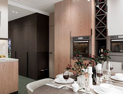 Проект был разработан для молодой пары, которой было важно создать уютное пространство, где всегда можно зарядиться теплом и светом домашнего очага. Для реализации была подобрана медовая палитра. В отделке были использованы отделочные материалы, демонстрирующие природный рисунок: камень, дерево, металл. В интерьере присутствуют графические элементы, выполненные ППУ молдингами или рейками из массива дерева. Световые приборы выполненные в современном исполнении.