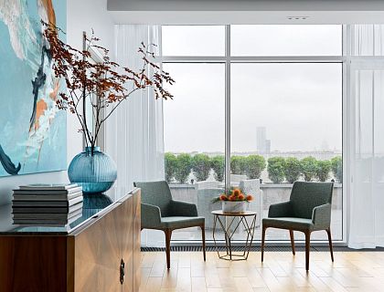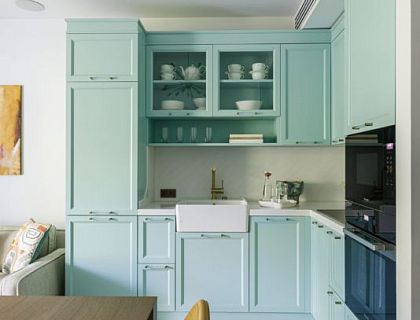 Элегантный неоклассический интерьер с яркими акцентами разработан для трехкомнатных апартаментов в премиальном жилом комплексе в Сочи. Апартаменты находятся на берегу моря, все окна выходят в парк, и цветовая гамма интерьера передает близость к природе. Квартира имела свободную планировку, поэтому интерьер разрабатывался с нуля, начиная с «нарезки» помещений. Важной частью проекта стало интегрирование инженерных решений (вентиляция, умный дом и т.п.) в дизайн апартаментов.