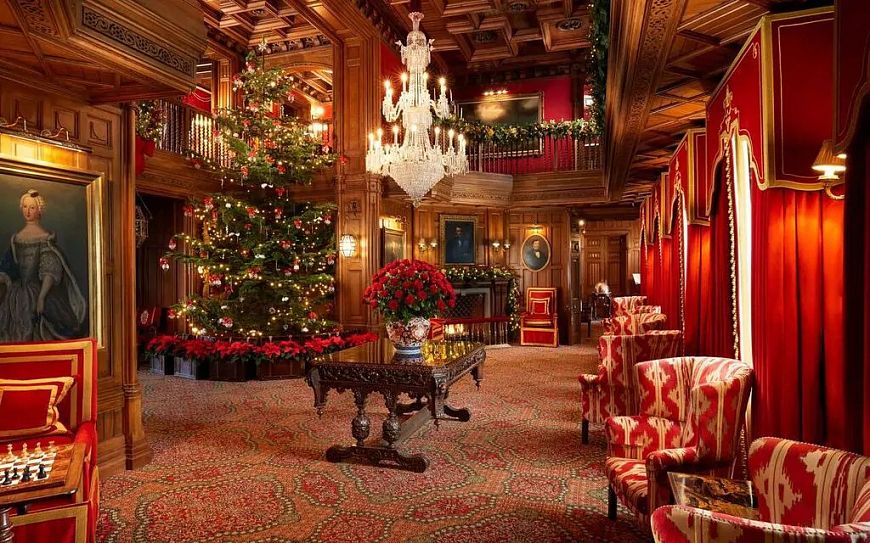 Благородная ель в Оук-холле ирландского Ashford Castle, датируемого 1228 (!) годом, - хорошая и давняя традиция, которая соблюдается больше 100 лет.