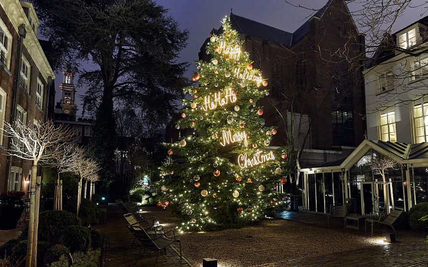 «Классика – фантастика». Именно этот слоган стал лейтмотивом дизайнерской концепции 11-метровой датской ели, установленной во внутреннем дворе гостиницы Pulitzer в Амстердаме.