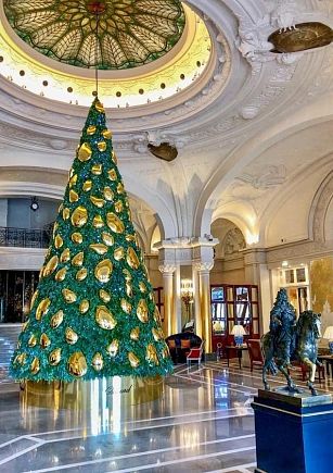 Рождественское дерево в отеле «Париж» в Монте-Карло, созданное при участии ювелиров известной мировой компании, украшено тончайшим сусальным золотом.