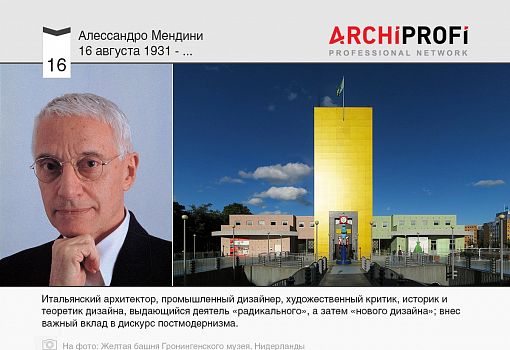 Алессандро Мендини - итальянский архитектор, промышленный дизайнер, художественный критик, историк и теоретик дизайна, выдающийся деятель «радикального», а затем «нового дизайна».