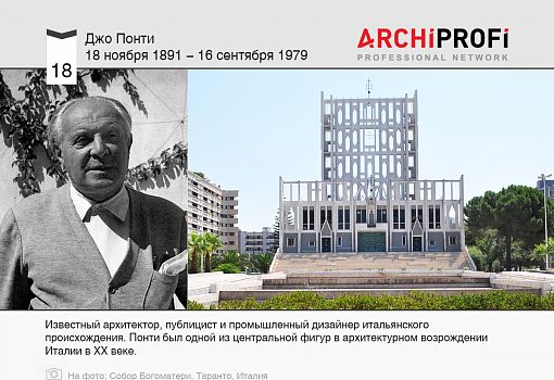 Джо Понти - итальянский архитектор, промышленный дизайнер, публицист. Понти был одной из центральной фигур в архитектурном возрождении Италии в XX веке.