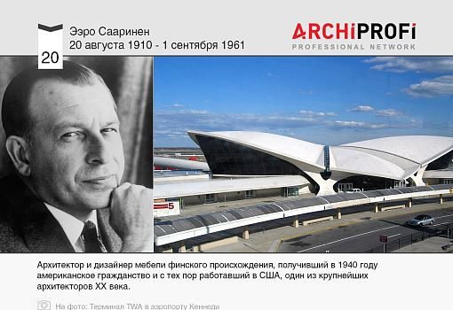 Ээро Сааринен - архитектор и дизайнер мебели финского происхождения, получивший в 1940 году американское гражданство и с тех пор работавший в США. Один из крупнейших архитекторов XX века.