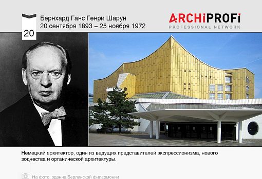 Ганс Шарун - известный немецкий архитектор, один из ведущих представителей экспрессионизма, нового зодчества и органической архитектуры.