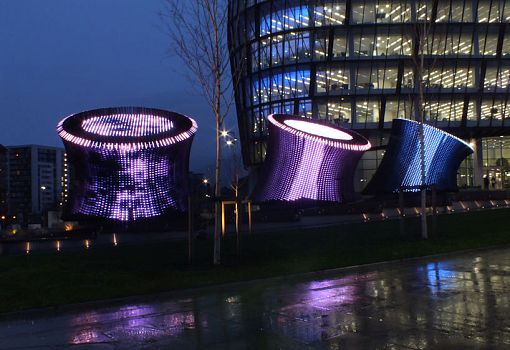 Многофункциональный комплекс NOMA включает офисные и жилые здания, торговый и развлекательный центры. Массивные «земляные трубы», сооружения из бетона и алюминиевых пластин, обеспечивающие свежим воздухом группу офисов в самом центре комплекса, были не слишком привлекательными, пока за них не взялись специалисты бюро Cundall. Их проект декорирования этих трех объектов обошел предложения других соискателей. Дизайнеры Cundall превратили вентиляционные трубы в динамичные световые инсталляции с возможностью создания разнообразных световых композиций.