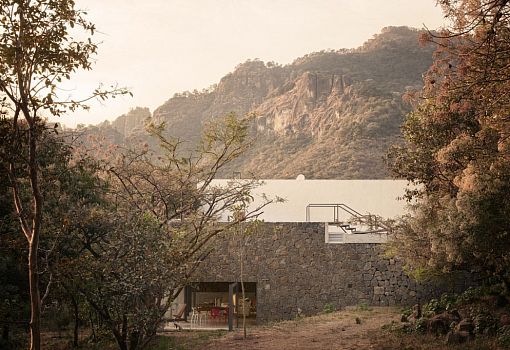 Органично встроили в живописный природный ландшафт Мексики дом Casa Meztitla архитекторы бюро EDAA. Основой строения стали местные материалы, которые позволили сооружению буквально слиться с окружающей средой. Колористический акцент здания – это второй этаж, выполненный из белого бетона. Стены из грубого камня обеспечивают приватность, а большая площадь остекления и открытые пространства – связь с природой. Площадь сооружения составляет 400 кв. м.
