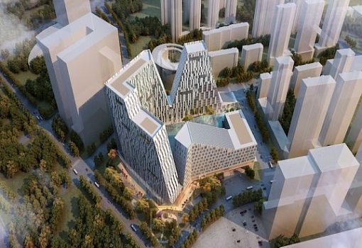 Калифорнийские архитекторы 5+design закончили проектирование комплекса «Алмазная гора» для Шэньяна (КНР). В процессе работы сложности вызвали строгие требования к инсоляции помещений. Вдохновение архитекторы черпали в традиционной пейзажной живописи Китая. Символическая «горная цепь» объединена с «высокогорным озером» атриума. Структура фасадов отображает слои осадочных пород.