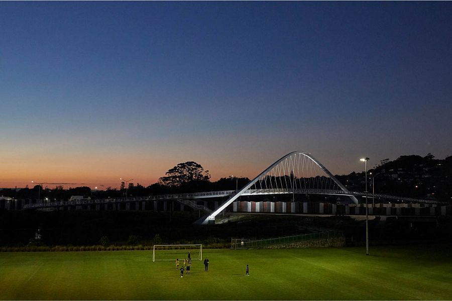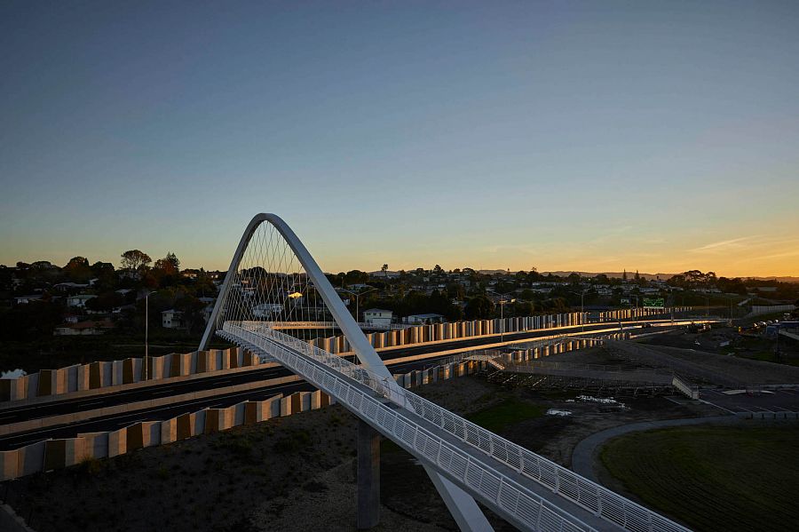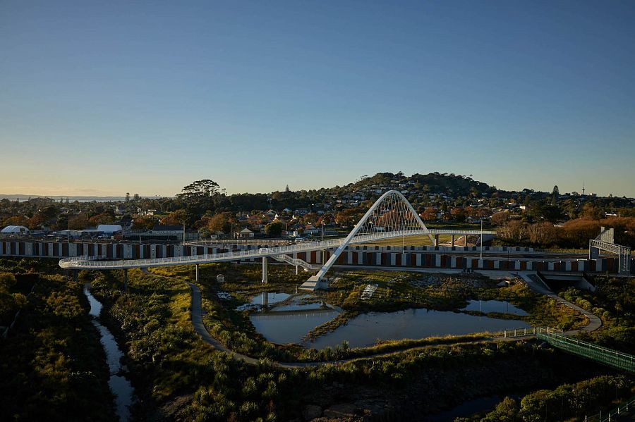 Своего рода образцово-показательный инфраструктурный объект был недавно сдан в Окленде (Новая Зеландия) – пешеходный мост Уотервью, соединяющий два густонаселенных района города, которые оказались отрезанными друг от друга двумя параллельными скоростными туннелями протяженностью 2, 5 км.