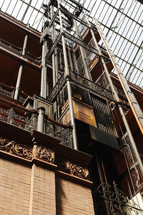 Это пятиэтажное офисное здание «снялось» в огромном количестве кинофильмов, включая такие известные, как «500 дней лета», «Художник», «Бегущий по лезвию бритвы». Архитектор Чарльз Мур назвал Брэдбери-билдинг «одним из самых волнующих мест на Североамериканском континенте». Но самое примечательное, рассказывает газета Los Angeles Times, заключается в том, что построил здание доселе никому не известный начинающий архитектор Джордж Уайман. Именно ему Льюис Брэдбери поручил разработать архитектурный пероект знаменитой пятиэтажки, и это была настоящая прихоть магната и миллионера. Говорят, у Уаймана было видение; внутренний голос сказал ему: «Берись за эту работу, она тебя прославит». Собственно, так все и вышло. Каких только архитектурных историй нет на свете!
