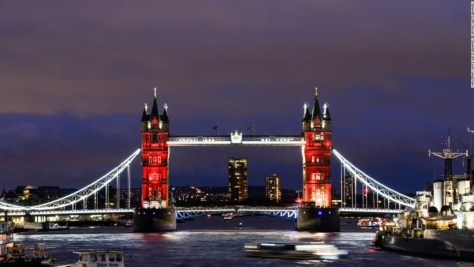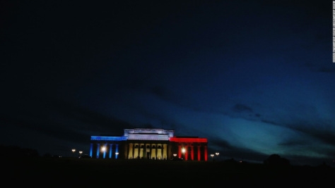 Опубликован список знаковых архитектурных сооружений, которые в знак траура и в поддержку семей погибших во время терактов в Париже были «перекрашены» при помощи подсветки в цвета французского флага. Это Тауэрский мост (Лондон), Бранденбургские ворота (Берлин), Центр всемирной торговли (Нью-Йорк), Восточная Жемчужная башня (Шанхай), Королевский дворец в Казерте (Италия), стадион Friends Arena (Стокгольм), здание Сената (Мехико), башня «Калгари», небоскреб Taipei 101 (Тайбэй), музей Окленда.