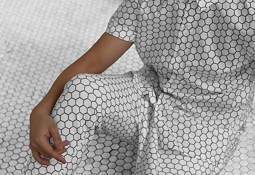 «Архитектурный камуфляж» от студии Snarkitecture – это новая серия одежды, в которой используются повторяющиеся принты строительных текстур, что позволяет владельцу одежды «затеряться» среди объектов архитектуры. Первый выпуск этой серии включает в себя модели, в дизайне которых использован узор мрамора, четырехугольных и шестиугольных плиток. Все принты нанесены в масштабе 1:1 на футболки, головные уборы, куртки, рюкзаки и брюки.