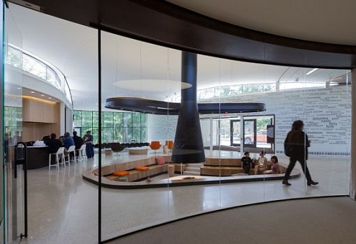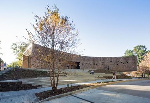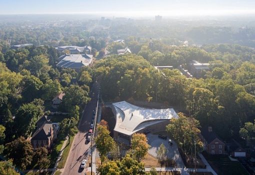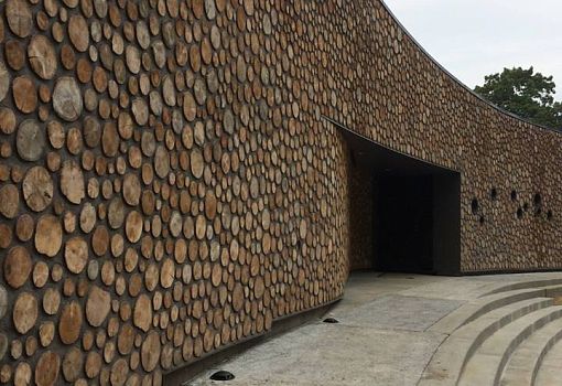 Бюро Studio Gang спроектировало центр социальной справедливости Arcus в одном из городов штата Мичиган (США). На плане он напоминает геометрически правильную трехконечную звезду, или три бумеранга, обращенные друг к другу выпуклыми частями. Однако, самое интересное в этом проекте – не форма здания, а техника облицовки фасада. Архитекторы воскресили одну из традиционных американских строительных технологий – кордовую деревянную кладку. Суть ее в том, что стена дома формируется из коротких (около 30 см) прочных бревен небольшого диаметра. В данном случае использован кедр.