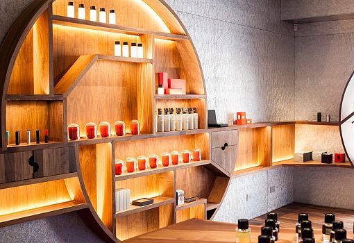 Архитекторы Steven Holl Architects максимально рационально использовали объем небольшого помещения, чтобы создать парфюмерный бутик в Нью-Йорке. Трехэтажное кирпичное здание в Гринич-Виллидж общей площадью 122 кв. м вмещает торговое пространство и офис. В композиции интерьера нетрудно заметить элементы, свойственные кубизму: большие окна в геометрически четких рамах; полукруглые деревянные витрины, «утопленные» в стены и разделенные полками для товара.