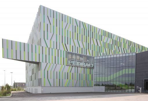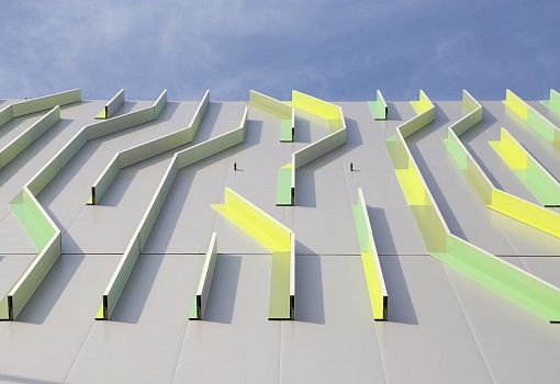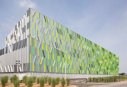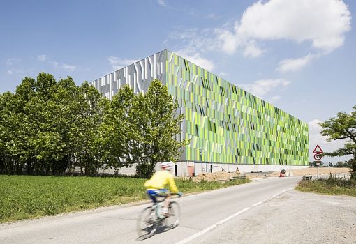Автоматизированный склад на севере Италии построен по проекту Сino Zucchi Architetti. Название объекта переводится как «травинки», именно такой мотив лежит в основе концепции. Экструдированные алюминиевые профили разных оттенков зеленого образуют «картинку» за счет комбинации вертикальных и наклонных линий. Новый склад высотой 29 м и общей площадью 7000 кв.м расположен в провинции Бергамо. Комплекс, рассчитанный на хранение 16880 поддонов с полуфабрикатами и готовыми изделиями, соединен с существующими производственными помещениями, и находится в эксплуатации 24 часа в сутки.