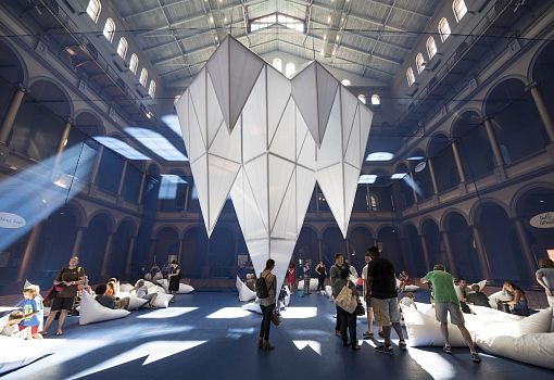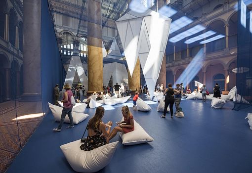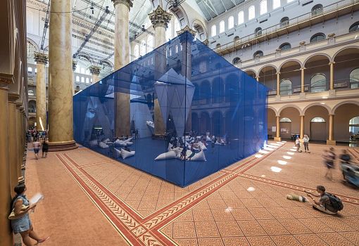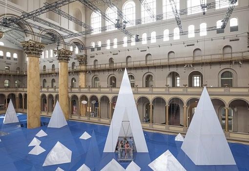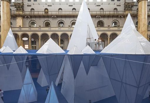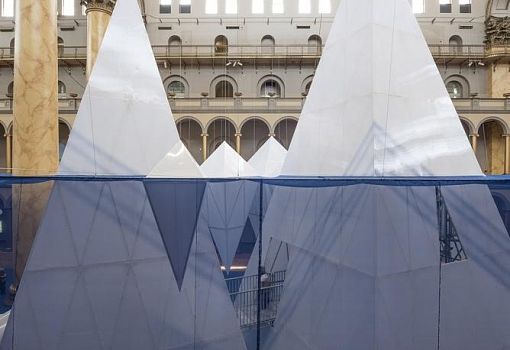 В Национальном музее строительства Вашингтона установлена инсталляция «Айсберги», являющаяся частью оригинальной творческой серии Summer Block Party. Уникальность этого летнего музейного уголка, разработанного компанией James Corner Field Operations, не только в том, что посетители имеют возможность наблюдать подводную и надводную части айсбергов, а также и в том, что вся конструкция выполнена из строительных материалов многоразового использования, в частности, поликарбонатных панелей и строительных лесов. «Подводная» часть инсталляции 6 метров в высоту, а самый высокий айсберг возвышается над ватерлинией еще на 11 метров, достигая уровня балконов третьего этажа музея. В этой поликарбонатной ледяной глыбе располагается смотровая площадка, посетив которую, можно пересечь подводный мост и отдохнуть среди пещер и гротов на дне океана, посидеть на мягких «ледяных» подушках, попробовать японский сладкий лед какигори.