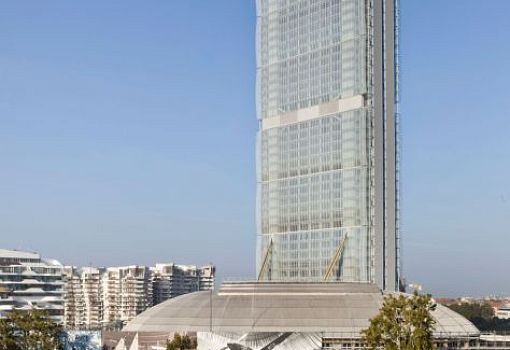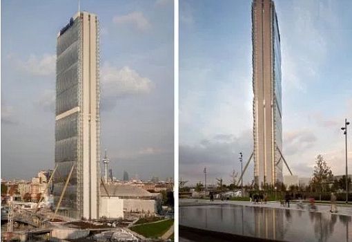 Живописный небоскреб был достроен в конце 2015 года в Милане (Италия). Основной идеей архитекторов Arata Isozaki & Associates и Andrea Maffei Architects стала бесконечность, которая была передана модульной композицией. Башня состоит из отдельных шестиэтажных блоков 24х61,5 м, фасады которых выполнены из выпуклых листов стекла. В результате буквально на пятачке (не считая диагональных опор) вырос центр общей площадью более 80 000 кв.м.