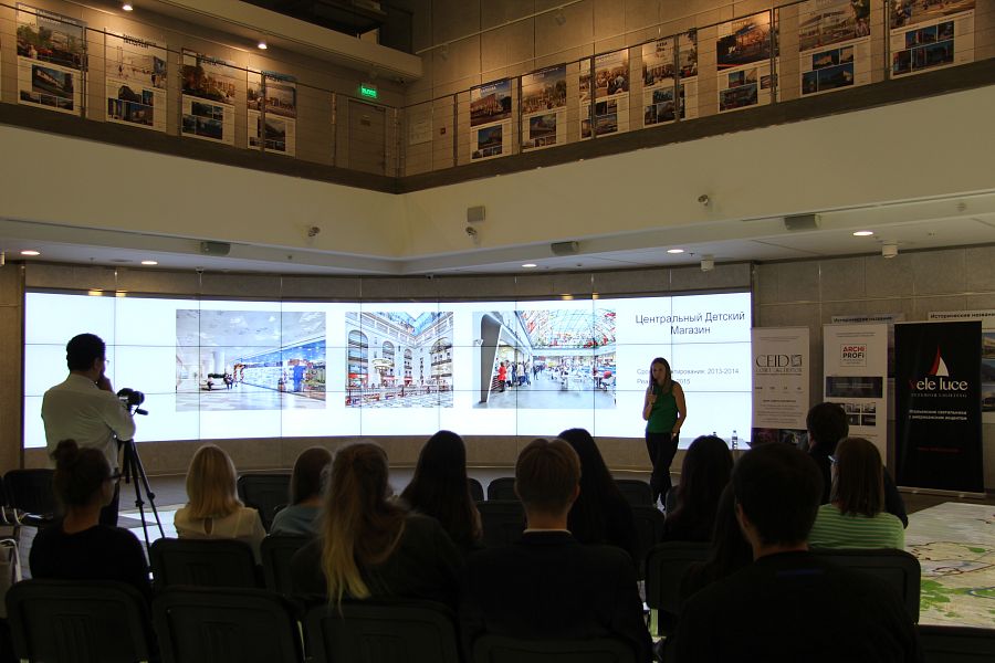 Главная тема - безопасность общественных интерьеров. Юлия Тряскина раскрыла эту тему на примере нескольких крупных проектов бюро UNK project - аэропорта «Симферополь», бассейна «Лужники», фитнес-клуба World Class, образовательного комплекса «Умная школа» в Иркутске, студенческого кластера в Тюмени, кинотеатра «Люксор» в Сочи, центрального детского магазина в Москве на Лубянке, семейного клуба Ribambelle, ресторана Bocconcino в Лондоне, различных больших жилых комплексов.