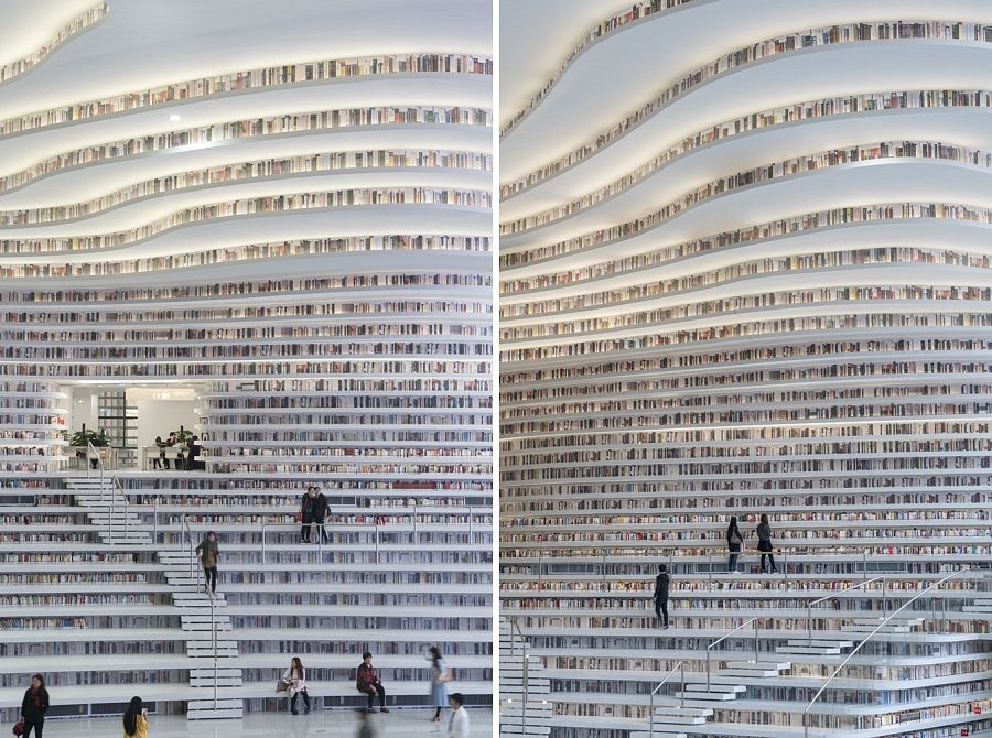 Необходимо отметить, что библиотека Биньхай - часть так называемого "культурного кластера", состоящего из пяти зданий, построенных разными архитекторами - Bernard Tschumi Architects, Bing Thom Architects, HH Design и теми же MVRDV. Все эти пять корпусов связаны между собой частично остекленной эспланадой, созданной по проекту студии GMP.
