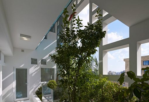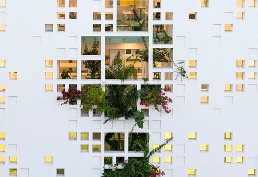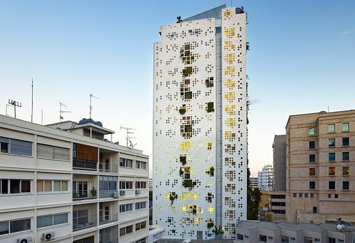 По проекту бюро Жана Нувеля в Никосии (Кипр) построили необычный многофункциональный комплекс. Для этой башни White Walls 2015 года архитектор использовал современную минималистскую стилистику. В глаза сразу же бросается нерегулярность оконных проемов: они расположены по «пиксельному» принципу. Еще одна особенность проекта – щедро озелененные открытые лоджии и атриумы, позволяющие хотя бы чуть-чуть приблизить природу к человеку.