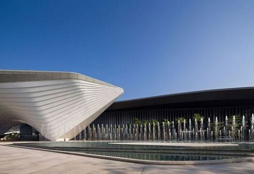 В Чжухае (КНР) завершается строительство ядра деловой активности города. Площадь CBD составит почти 700 000 кв.м. На днях был сдан в эксплуатацию один из самых крупных в Китае выставочных центров, под разными углами обзора напоминающий то фантазийную скульптуру, то инопланетный космический корабль, то огромный океанский лайнер с горизонтально сегментированной обшивкой.