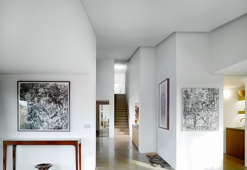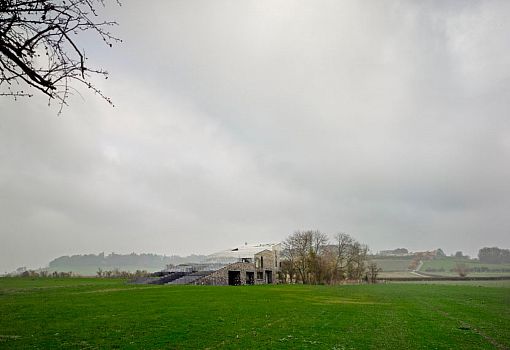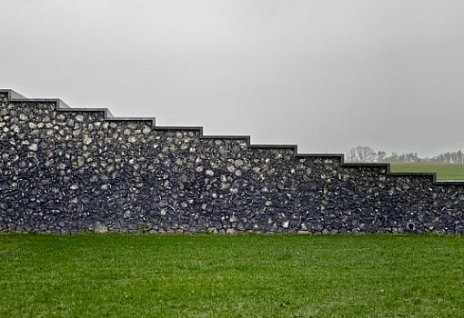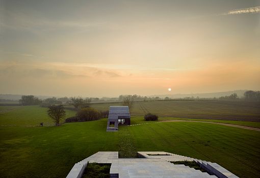 В окружении мистического тумана поместья Уоддесдон в Англии были построены два необычных здания. Авторы проекта, выполненного по заказу лорда Ротшильда, - архитекторы бюро Skene Catling De la Pena. В главном доме общей площадью 465 кв. м имеются три спальни, кухня со столовой и библиотеки. Строение меньшего размера предназначено для гостей и вмещает несколько просторных комнат. Этот комплекс имеет говорящее название – Флинт-хаус. «Flint» – кремень, а этот регион характеризуется своими богатыми кремневыми месторождениями. Здания выступают из земли, как геологические формации, и постепенно - благодаря продуманному дизайнерами колористическому решению - сливаются с небом. Кремний, которым облицованы фасады, у самой земли очень темный. По мере увеличения высоты он постепенно светлеет, а на самом верху кремень сменяет мел-известняк. Большие прямоугольные оконные проемы от пола до потолка еще сильнее подчеркивают мистическую атмосферу комплекса. В ходе разработки и реализации проекта к участию были приглашены художники и скульпторы.