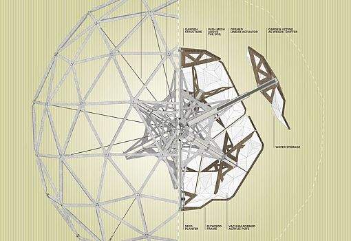 Изучая новые способы взаимодействия людей и природы, Уильям Виктор Камиллери и Данило Сампайо из школы архитектуры Бартлетта в университетском колледже Лондона создали «ботанический шар», который специалисты уже окрестили киберсадовником. Автономный сад-сфера называется Hortum Machina B. В него встроена «электронная начинка», которая дает кибер-садовнуку способность автоматически передвигаться в поисках благоприятных для растений условий. Под экзоскелетом Hortum Machina B установлена дюжина садовых модулей. Каждый из них удерживает внутри шара емкости с растениями, а также линейные двигатели, которые заставляют сферу то ли катиться, то ли шагать по земле, смещая центр тяжести с помощью моторизованных выдвижных панелей. За счет электрохимии растений киберсадовник способен определять, пригодны ли условия окружающей среды для полноценной жизнедеятельности флоры. В случае необходимости панели перемещают структуру на новое место обитания. «В контексте развития беспилотных машин, автономных летательных аппаратов и бесконечного числа других форм интеллектуальной робототехники Hortum Machina B можно назвать киберсадовником», - говорят дизайнеры.