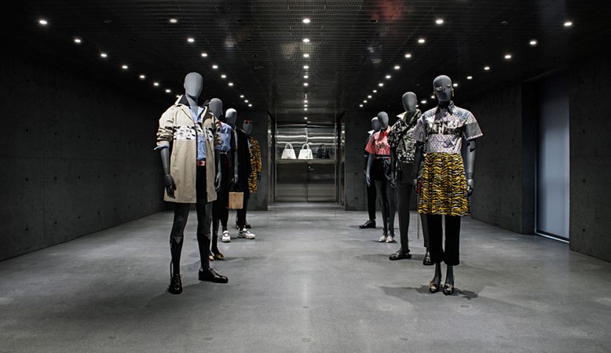 Любопытная деталь: в качестве примера дизайна заказчики продемонстрировали главе David Chipperfield Architects… минималистский, максимально функциональный сайт компании. И попросили выдержать интерьер в такой же эстетике. Магазин расположен в пятиэтажном здании площадью около 1200 кв. м. В процессе реконструкции с сохранением внешнего вида фасада были использованы только три материала – бетон, нержавеющая сталь и стекло. В соответствии с замыслом проектировщиков, внутри исторического здания было фактически возведено еще одно бетонное здание с другой высотой потолков. При этом неизменными остались некоторые оригинальные архитектурные детали – металлические балки, чугунные колонны, деревянные узлы каркаса.